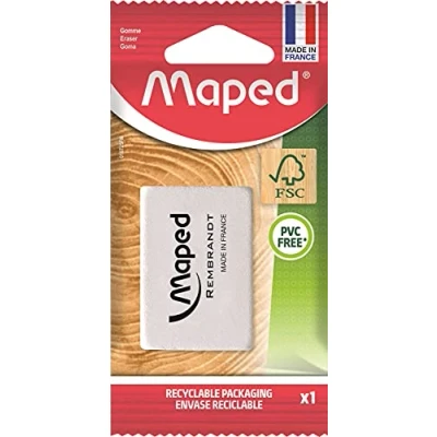 FSC CERTIFICATION: Thanks to a natural formulation and 100% recyclable packaging, Maped Rembrandt erasers meet FSC certification, for sustainable management of the world's forests Since 1947, Maped has been supporting its development on industrial know-how, culture of innovation and responsiveness to offer its users effective and sustainable solutions White rubber Drawing Eraser Rubber rubber