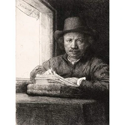 Rembrandt Selbstporträt Zeichnung an einem Fenster, großer Kunstdruck, Wanddekoration, Premium Wandbild