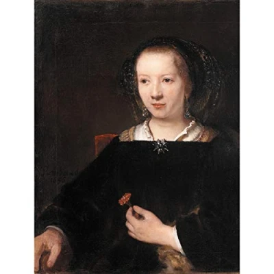 Rembrandt Studio Young Woman Carnation Painting Premium Wall Art Canvas Print 18X24 Inch