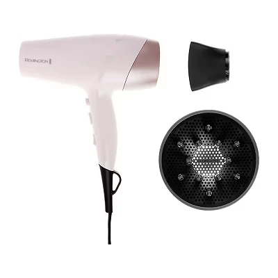 CurrysSpeed up your morning routine with this Remington hair dryer. As you dry, micro-conditioners with almond oil are released onto your hair to help fight frizz. With 2200 W of power and a fast airflow, your hair's ready in no time. Plus, its ionic technology leaves your hair looking glossy and feeling silky smooth.Good to know- Use the six heat and speed settings to adjust the airflow for any hairstyle- A ceramic coated grille spreads heat evenly so your hair dries faster with less damage and no frizz- It comes with a diffuser so you can create soft waves and defined curls easily- Lock in those perfectly bouncy curls with a couple of cool shots- When you're in a hurry, blow dry your hair quickly with the wide concentrator- The hanging loop comes in handy for easy storage
