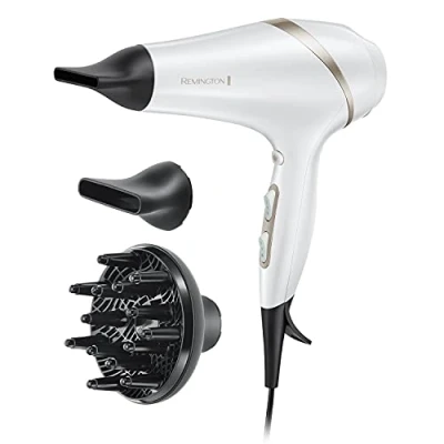 Remington Hydraluxe Hair Dryer (Micro Conditioners to Help Balance Moisture, Hydracare Temperature Setting for Healthy Hair, Diffuser, Slim Styling & Wide Concentrators, Powerful, Ionic, 2300W) AC8901