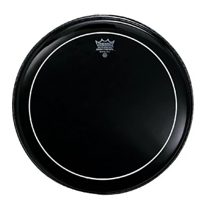 18" ebony pinstripe bass drum head Made with two (10- & 5-mil) Mylar plies with a measured layer of a ring reducing agent applied between them at the outer edge of their trademark stripe to dampen high frequency overtones for warm resonance Ebony Pinstripe's quick decay makes them ideal heads for the "fat" sounds of Rock and R&B and for those who want more low end sounds with moderate attack and response characteristics