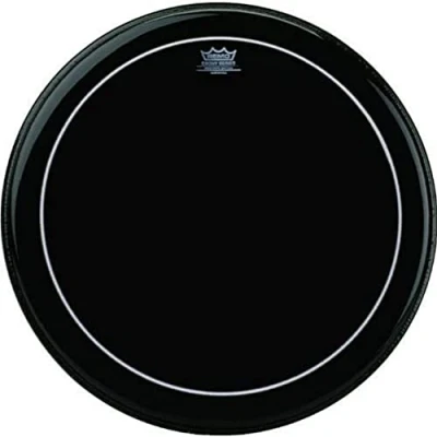 28" ebony pinstripe bass drum head Made with two (10- & 5-mil) Mylar plies with a measured layer of a ring reducing agent applied between them at the outer edge of their trademark stripe to dampen high frequency overtones for warm resonance Ebony Pinstripe's quick decay makes them ideal heads for the "fat" sounds of Rock and R&B and for those who want more low end sounds with moderate attack and response characteristics