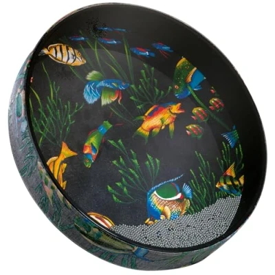 OCEAN DRUM, 16" Diameter, 2 1/2" Depth, Fish Graphic The Package heigt of the product is 3.4 inches The Package Length of the product is 17.4 inches