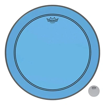 AmazonRemo Powerstroke 3 Colortone Blue Bass Drum Head, 22" P3-1322-CT-BU Single layer 10-mil Mylar film, with a built-in 10-mil cushioning ring With impact patch, featuring Remos Skyndeep imaging technology Colour is in the fur, no change of the usual P3 sound
