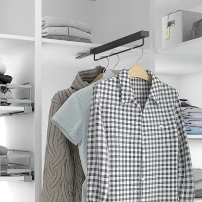 Removable hanger for hanging hangers and easy access to your clothes. Measures 68mm wide x 56mm high x 290mm long Ideal for closets and changing rooms with little floor Maximum load: 15 kg.