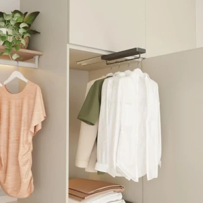 Removable hanger for hanging hangers and easy access to your clothes. Measures 68mm wide x 56mm high x 445mm long Ideal for closets and changing rooms with little floor Maximum load: 15 kg.