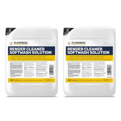 PROFESSIONAL RESULTS: This Floorseal professional quality & performance acid free render cleaner has been designed to be suitable for use on any type of render. This powerful & effective formula will remove green algae, red algae, bird droppings and black lichens. EASY TO APPLY: This powerful & effective render cleaner has been proven to produce professional results. It can be applied by anyone from professional cleaning companies to DIYers. Apply with a pump-up sprayer or brush (for small areas) as required. Spray on, keep wet (by adding more product) and allow to dwell for 15 minutes or more. Then rinse off with clean water. SUITABLE FOR ALL TYPES OF RENDER: This effective render cleaning agent has been designed for use on any type of render, stone, general masonry, brick, clay-based tiles, pebble dash, or concrete. This also includes roof tiles, walling, or horizontal surfaces. After cleaning we recommend you seal your freshly cleaned render with Floorseal Render & Masonry Sealer, to inhibit organic growth and resist rainwater, damp & general staining. The surface can then be generally maintained with a periodic application of Floorseal Green Remover Concentrate. GREAT COVERAGE: This render & masonry cleaner has been formulated to be the hardest working and most user friendly on the market. With a coverage rate of 100m2 (or more) for every 5 litres of concentrate. RAPID RESULTS: Floorseal Render Cleaner Softwash Solution will quickly remove black mould/lichen & green & red algae. Apply the solution, allow to dwell, and rinse off – prepare to be amazed! APPLY TO: Lime render, sand & cement render, modern silicone-based renders, painted render, pebbledash, brick walls, concrete, natural stone & general masonry. See the foot of the page for more details.