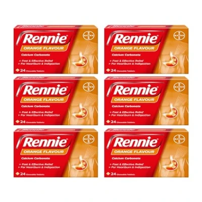 Swift Relief: Rennie Orange Flavour fast-acting tablets offer rapid relief from heartburn, indigestion, and acid reflux, getting to work within minutes to alleviate discomfort. Potent Antacid Action: Each tablet contains calcium carbonate, a powerful antacid that works efficiently to neutralize excess stomach acid, providing effective relief from symptoms. Comprehensive Relief: Formulated specifically for heartburn and indigestion, Rennie Orange Flavour tablets offer comprehensive relief from common digestive issues, promoting overall comfort. Fast and Effective: With their fast-acting formula, Rennie Orange Flavour tablets provide quick and efficient relief, making them an ideal solution for on-the-go symptom management. Trusted Solution: Rennie Orange Flavour tablets are a trusted choice for those seeking fast and effective relief from heartburn and indigestion, offering reliable comfort with every dose.