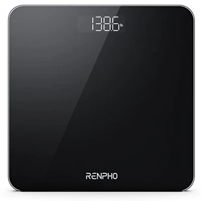 High precision measurements: 4 high precision sensors offer accurate weight measurement with a maximum weight of 28st/180kg/400lb in 0.1lb/0.05kg increments, with 3 weighing units in st+lb/lb/kg. Easy to use: Renpho digital bathroom scale feature a large clear LED monitor to get a clear reading of your body weight measurements regardless of distance and light condition, comfortable and strong enough to use. Easy to clean. Press the unit button to change between st+lb/lb/kg. Step-on technology: The self-calibrated bathroom scale achieves precise and immediate weighing readings, equipped with step-on technology, auto on/off function and low battery indicator. Large 11x11" Platform: This electronic weighing scale is equipped with a large 11x11" ultra-strong tempered glass platform for a larger group and safer measurement. 2 AAA batteries included. Note: Please place the weighing scale on a hard and flat surface. Sleek and user-friendly design: Features smooth, rounded corners instead of sharp edges. Designed with 5mm tempered glass and a large platform for greater sturdiness, stability and safety. Modern and sleek design fits perfectly into any bathroom or bedroom, easy to store.