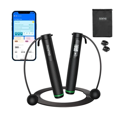 Low ceilings? No problem! You'll be able to use this rope for both corded and cordless workouts. It still gives you that real skipping rope feeling without anything connected to the handles. When you've got a bit more room you can connect the 10 m rope to have a more traditional workout. Whichever way you're using it, the in-built counter keeps track of your jumps so you'l know exactly how many you've done. With the Renpho health app, you'll be able to see how long you've been skipping, the number you've done, and how many calories you burned. The precise sensors measure all the detail, so you can just focus on your workout.Good to know- There are 3 workout modes - free jump, countdown timer and number count- The rope's wear-resistant and tangle-free, so it's ready when you are- Weighted silicone handles help to provide a firm grip no matter how you're using it- Get a clear view of your workout data on the LCD display, and change mode using the button