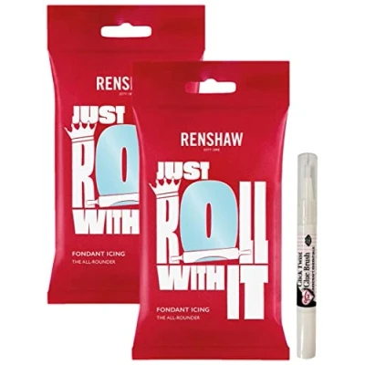 Renshaw Duck Egg Blue Ready to Roll Fondant Icing 500g (2X 250g) and Rainbow Dust Edible Glue Brush