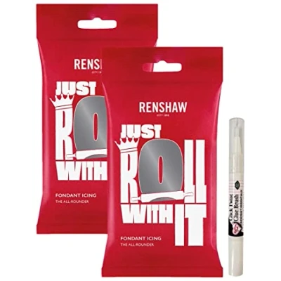 Renshaw Grey Ready to Roll Fondant Icing 500g (2X 250g) and Rainbow Dust Edible Glue Brush