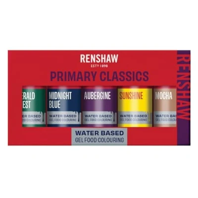 Renshaw Water Based Gel Food Colouring, Mixed Multipack (Red, Purple, Green, Yellow, Blue), Perfect for Cakes and Decorations, 20 g (Pack of 5)