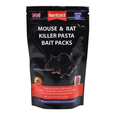 In conclusion, the Rentokil Mouse and Rat Killer Pasta Bait Packs offer a practical and straightforward solution for managing rodent issues in residential and business environments. With their attractive formulation, ease of use, and rapid effectiveness, they form an essential part of any comprehensive pest control plan.