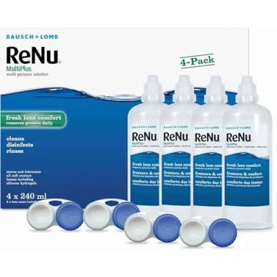 Always Choose ReNu. ReNu Multiplus rejuvenates your contact lenses, making it feel like you're putting in a fresh pair every day Multi Purpose. Proven to fight germs and clean your soft contact lenses, including silicone hydrogel lenses. Not suitable for RGP or hard lenses. Moisturise, Clean, Disinfect, Lubricate, Rinse and Store with confidence All Day Comfort. Provides a cushion of comfort for your contact lens wear. It is proven to fight germs, clean lenses and remove irritating protein deposits from your soft contact lenses For Healthy Eyes, Cushions lenses in moisture, removes protein, cleans, disinfects, lubricates and rinses your lenses. Daily use eliminates the need for a separate enzymatic cleaner or daily cleaner for many lens wearers - consult your eye care practitioner Effective Disinfection, Gentle care for sensitive eyes, yet effective disinfection to destroy harmful micro-organisms on the surface of the lens To report an adverse reaction or defect of our product please contact the UK Product Complaints team via the Bausch + Lomb UK website