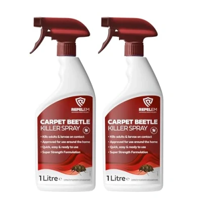 REPELEM 2 Pack Carpet Beetle Killer Large 1L Instant Action Spray, Low Toxicity Treatment, Kills Bugs at all life stages, Professional Strength Insecticide Spray