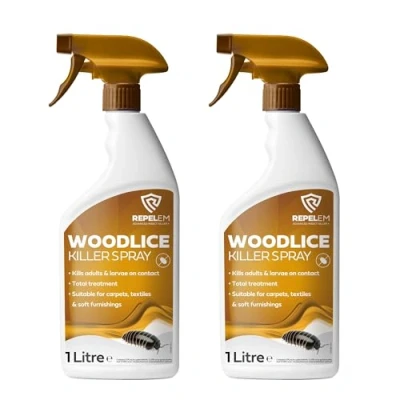 REPELEM 2 Pack Woodlice Killer Spray Large 1L, Professional Strength Insect & Bug Treatment, Instant Action Insecticide for Woodlice,Cockroaches Bugs