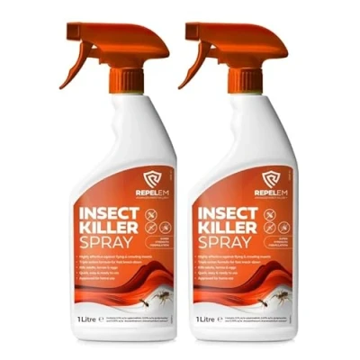 REPELEM Insect Killer Spray Professional Strength Flying & Crawling Treatment For The Home, Effectively Targets Flies, Ants, Spiders, Woodlice, Silverfish, Ticks, Wasps Large 1L (Pack of 2)