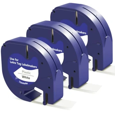 3 Pack Compatible with Dymo LetraTag Tape 91201 S0721610, Color: Black on White. Size: 1/2 inch x 13 feet (12 mm x 4 m) Compatible with Dymo Label Maker: Compatible with Dymo Letratag LT-100H, LT 100H Plus Handheld; Compatible with Dymo Letratag LT-100T, LT 100T Plus Portable; Compatible with Dymo 200B Bluetooth; Compatible with Dymo QX50, XR, XM, 2000 label printer High Quality: Our compatible Dymo label tape 91201 is plastic label tape and have passed many strict tests, self-adhesive, strong adhesion, and it has stronger waterproof function Print Clearly: The Compatible with dymo letratag refills adopt thermal transfer technology without confusion or smudging that printed font is very clear and smooth Application: The compatible with dymo label maker tape 91201 providing you with the perfect labeling solution for your home, office, school, hotel or other applications