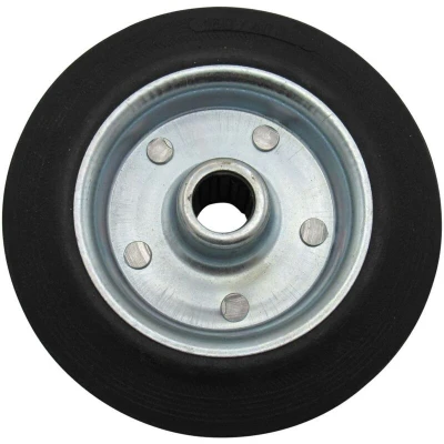 General description Replacement Trailer Jockey Wheel designed for easy replacement of jockey wheels with matching dimensions. This spare wheel features a solid rubber construction and a durable metal rim, making it suitable for various applications in trailers and general transport use. Technical specifications Wheel Diameter: 160MM Wheel Width: 40MM Bore: 21MM Bore Length: 51MM Material: Solid Rubber Wheel with Metal Rim Compatibility and accessories Compatible with jockey wheels of the same size dimensions (157MM x 38MM) Available accessories for trailers and general transport use