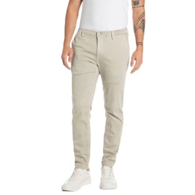 ZEUMAR: Based on the famous Anbass Fit, these chinos have a regular waist and a slightly tapered leg This makes the slim trousers perfect for a casual look HYPERCHINO COLOR XLITE: REPLAY's famous Hyperflex technology ensures a lightweight feel and maximum freedom of movement Perfect for every season, the chino combines shape stability and low weight CASUAL & COOL: The trousers with stretch content are particularly comfortable for everyday use and can be ideally combined with casual tops CARE INSTRUCTIONS: It is recommended to wash the jeans on a gentle cycle at 30 °C and iron them up to a maximum of 110 °C REPLAY has been one of the leading Italian premium denim and lifestyle brands for men and women for 40 years The brand stands for innovation, authenticity and places an increased focus on sustainability