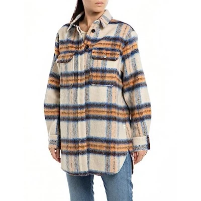 REPLAY Adult W2114 Poly Wool Y.D. Check Shirt, Cream/Royal/Dark Brown/Brick 010, M