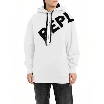 REPLAY Adult W3100A Cotton Fleece Hooded Sweatshirt, White 001, S