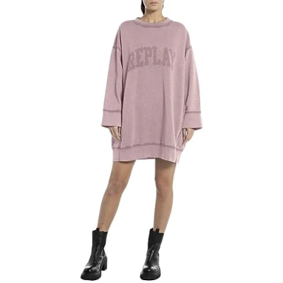 REPLAY Adult W9072 Garment Dyed Cotton Fleece Dress, Powder Rose 465, S