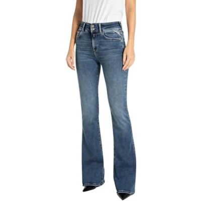 NEWLUZ FLARE: The bootcut flare fit jeans have a high waist and a tight leg cut from the hip to the knee The fit is flared from the middle of the calf to the bottom edge WITH STRETCH: The stretch content makes the trousers particularly stretchy and ensures a comfortable fit CASUAL & COOL: The jeans with stretch content are particularly comfortable for everyday use and can be ideally combined with casual tops CARE INSTRUCTIONS: It is recommended to wash the jeans on a gentle cycle at 30 °C and iron them up to a maximum of 110 °C REPLAY has been one of the leading Italian premium denim and lifestyle brands for men and women for 40 years The brand stands for innovation, authenticity and places an increased focus on sustainability