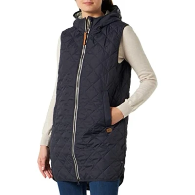 REPLAY camel active Women's Long Quilted Vest with Hood Made of Recycled Polyester Vest, darkblue, 10