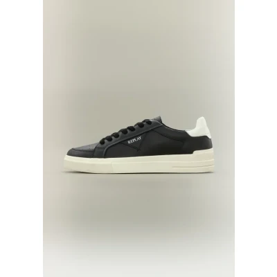 Replay EVAN EDIT Trainers black/off white Sale at Zalando UK | Upper material: leather/Lining: imitation leather/Sole: synthetics/Insole: imitation leather | Sale order at Zalando UK! Size: 9.5. Color: Black/off white. Pattern: plain.