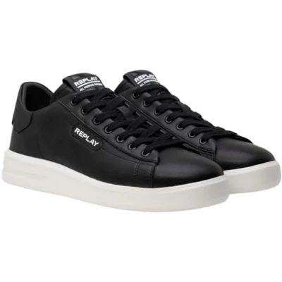 REPLAY Men's Cupsole Leather Trainers, 562 Black, 8 UK