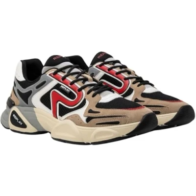 REPLAY Men's Destiny M Night 2 Sneaker, 3323 Beige, Black, red, 7.5 UK