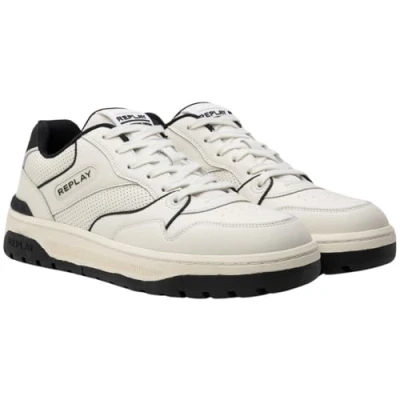 Replay Men's Gemini Punch Sneaker, 112 Off Wht Black, 9.5 UK