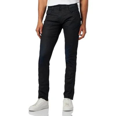 REPLAY Men's M914Y Anbass Black Stretch Coated Jeans, Dark Blue 007, 34W / 30L
