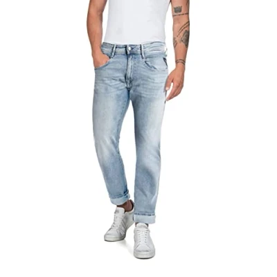 REPLAY Men's M914Y Anbass Super Stretch Jeans, Light Blue 010 3, 27W / 30L
