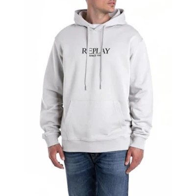Replay Men's Regular Fit Cotton Hoodie, 011 Natural White, M
