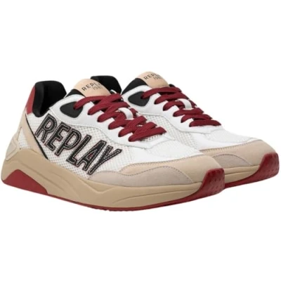 Replay Men's Tennet Wave Sneaker, 079 White Red, 7.5 UK