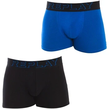 REPLAY Men's Boxer Style 2 T/C Cuff 3D Logo 2pcs Box, Cobalt Blue/Black, S