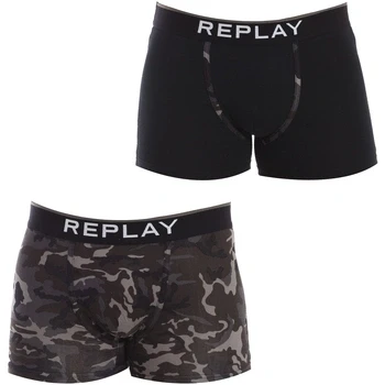 REPLAY Men's Boxer Style 8 Cuff Logo&Camouflage 2pcs Waterfall Pack, Black/Camouflage Black, S