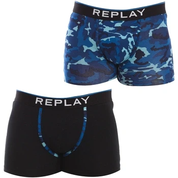 REPLAY Men's Boxer Style 8 Cuff Logo&Camouflage 2pcs Waterfall Pack, Black/Camouflage Blue, S