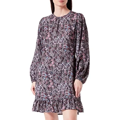 REPLAY Women's W9784 Dress, 010 Gray/Multicolour, L