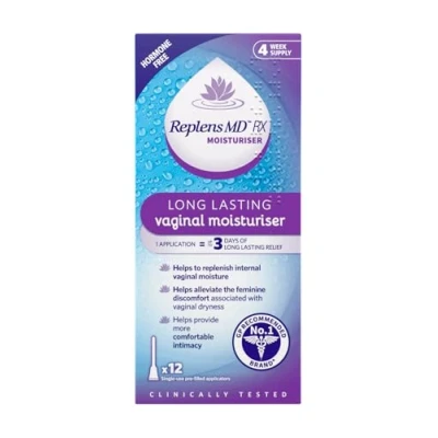 Replens long lasting vaginal Moisturiser, Up to 3 days of relief from dryness, Relieves Discomfort, Hormone Free, Clinically Tested, Pack 12 Pre Filled Applicators