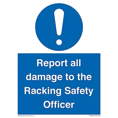 Report all damage to the Racking Safety Officer Sign 150x200mm A5P