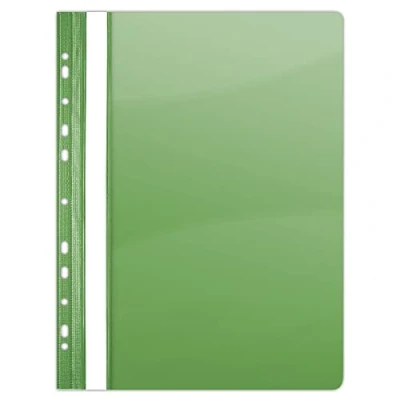 made of PVC, rigid;; holds up to 200 sheets;; size: 235x310mm; colour: green transparent front cover, 150µm thick;; format A4 coloured back cover, thickness: 160 µm; with 11 holes for sticking into the binder; replaceable, reversible full length title strip;