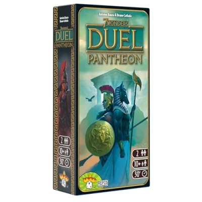 DUEL PANTHEON - Construct the Pantheon made up of various Mythologies and use the power of the Gods to bring your civilisation to its apogee. UPDATED WAY TO PLAY - 7 Wonders Duel: Pantheon will allow you to use effects of a never-seen before power! Players can summon the Gods to get their help or use their powers to destroy their opponent's strategy. STRATEGY GAME - Players must support the development of their civilisation and lead it to prosperity, subjugating their opponents. BATTLE OF THE WONDERS - Test your tactical skills in a battle of the wonders of the world. Build your city and your military, gather riches and construct a wonder of the world for eternity to triumph. DETAILS - The base game 7 Wonders Duel is required to play this expansion. For 2 players aged 10+, up to 30+ minutes playing time per game, game in English., Manufacturer: Asmodee Editions
