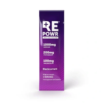 πππππ§ππππ₯ ππ¬ππ₯ππ§ππ’π‘: Proper hydration is not just about water. It's water plus electrolytes. Most health-conscious people don't get enough. This is especially true if you're physically active. REPOWR is scientifically formulated to give you all the electrolytes you need with none of the things you donβt. REPOWR will help you feel better, function better and perform better. It also tastes great, with 8 popular flavours to choose from. Each sachet has the right amount of sodium, potassium and magnesium, whether youβre following a healthy diet, doing intermittent fasting or exercising. ππ’πͺ π§π’ π£π₯ππ£ππ₯π: Mix the powder from one sachet with 750ml water. Shake or stir well until contents dissolve. Add more water to dilute taste or use less water for a stronger taste. Add ice for an extra refreshing chill. πππ‘ππππ§π¦ π¬π’π¨ πππ‘ ππππ: Both your body and brain need electrolytes. Reduction in concentration and cognitive ability is an early sign of dehydration. Drinking REPOWR will improve your mental and physical performance and your overall well-being. You can expect to feel the following benefits: improved energy and focus, less fatique, fewer headaches, reduced muscle cramps and better muscle performance. πππππ§ππ¬ ππππ§π¦: REPOWR helps those eating lower carb (keto, paleo, carnivore, whole-food) to avoid fatigue and headaches. It stops annoying muscle cramps and helps to maintain energy and focus. If you feel better, you're much more likely to succeed with your healthy lifestyle. ππ‘π§ππ₯π ππ§π§ππ‘π§ πππ¦π§ππ‘π: REPOWR is friendly for most types of fasting, with no sugar, calories or artificial ingredients. It doesn't impact your blood sugar or insulin response, yet it helps mitigate hunger, fatigue and brain fog, allowing you to fast longer and stronger. ππ«ππ₯πππ¦π π£ππ₯ππ’π₯π ππ‘ππ: REPOWR is ideal for electrolyte replacement during and after physical activity, so you can keep muscles moving, maintain concentration and prevent cramps. REPOWR replenishes actual sodium lost through sweat. Proper hydration also aids recovery. Our clean, no-sugar formulation is healthier, tastes great and helps you burn more fat. πππ₯πππ¨πππ¬ πππ’π¦ππ‘ ππ‘ππ₯πππππ‘π§π¦ π§πππ§ πͺπ’π₯π: REPOWR is, first and foremost, a health company. Our product contains no chemicals, additives or artificial ingredients. All our ingredients are chosen for quality and purity. Our formulation is backed by scientific evidence and used by doctors, health experts and top athletes. π£π’πͺππ₯ππ ππ¬ π’π₯π¬π« πππ¦ππ₯π§ π¦πππ§: Through a special partnership with Oryx Desert Salt, our sodium comes from The Kalahari Desert - one of the cleanest sources in the world. Ancient and unpolluted, with no microplastics. πͺππ’ π¦ππ’π¨ππ π‘π’π§ π§πππ π₯ππ£π’πͺπ₯?: Not recommended if you have hypertension, kidney disease or take diuretic medication. Check with your healthcare professional if you have an existing medical condition or take medication. This product does not treat any medical condition or deficiency. π£ππππππ ππ’π‘π§ππ‘π§π¦: 30 x 6.2g Single Serving Sachets (30 x Blackcurrant.)