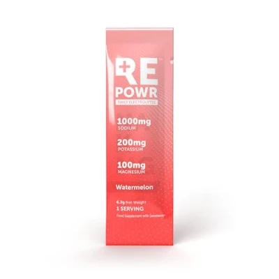πππππ§ππππ₯ ππ¬ππ₯ππ§ππ’π‘: Proper hydration is not just about water. It's water plus electrolytes. Most health-conscious people don't get enough. This is especially true if you're physically active. REPOWR is scientifically formulated to give you all the electrolytes you need with none of the things you donβt. REPOWR will help you feel better, function better and perform better. It also tastes great, with 8 popular flavours to choose from. Each sachet has the right amount of sodium, potassium and magnesium, whether youβre following a healthy diet, doing intermittent fasting or exercising. ππ’πͺ π§π’ π£π₯ππ£ππ₯π: Mix the powder from one sachet with 750ml water. Shake or stir well until contents dissolve. Add more water to dilute taste or use less water for a stronger taste. Add ice for an extra refreshing chill. πππ‘ππππ§π¦ π¬π’π¨ πππ‘ ππππ: Both your body and brain need electrolytes. Reduction in concentration and cognitive ability is an early sign of dehydration. Drinking REPOWR will improve your mental and physical performance and your overall well-being. You can expect to feel the following benefits: improved energy and focus, less fatique, fewer headaches, reduced muscle cramps and better muscle performance. πππππ§ππ¬ ππππ§π¦: REPOWR helps those eating lower carb (keto, paleo, carnivore, whole-food) to avoid fatigue and headaches. It stops annoying muscle cramps and helps to maintain energy and focus. If you feel better, you're much more likely to succeed with your healthy lifestyle. ππ‘π§ππ₯π ππ§π§ππ‘π§ πππ¦π§ππ‘π: REPOWR is friendly for most types of fasting, with no sugar, calories or artificial ingredients. It doesn't impact your blood sugar or insulin response, yet it helps mitigate hunger, fatigue and brain fog, allowing you to fast longer and stronger. ππ«ππ₯πππ¦π π£ππ₯ππ’π₯π ππ‘ππ: REPOWR is ideal for electrolyte replacement during and after physical activity, so you can keep muscles moving, maintain concentration and prevent cramps. REPOWR replenishes actual sodium lost through sweat. Proper hydration also aids recovery. Our clean, no-sugar formulation is healthier, tastes great and helps you burn more fat. πππ₯πππ¨πππ¬ πππ’π¦ππ‘ ππ‘ππ₯πππππ‘π§π¦ π§πππ§ πͺπ’π₯π: REPOWR is, first and foremost, a health company. Our product contains no chemicals, additives or artificial ingredients. All our ingredients are chosen for quality and purity. Our formulation is backed by scientific evidence and used by doctors, health experts and top athletes. π£π’πͺππ₯ππ ππ¬ π’π₯π¬π« πππ¦ππ₯π§ π¦πππ§: Through a special partnership with Oryx Desert Salt, our sodium comes from The Kalahari Desert - one of the cleanest sources in the world. Ancient and unpolluted, with no microplastics. πͺππ’ π¦ππ’π¨ππ π‘π’π§ π§πππ π₯ππ£π’πͺπ₯?: Not recommended if you have hypertension, kidney disease or take diuretic medication. Check with your healthcare professional if you have an existing medical condition or take medication. This product does not treat any medical condition or deficiency. π£ππππππ ππ’π‘π§ππ‘π§π¦: 30 x 6.2g Single Serving Sachets (30 x Watermelon.)