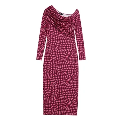 Fit: Slim Length: Midi Psychedelic check print Neckline: Asymmetric Sleeve: Long